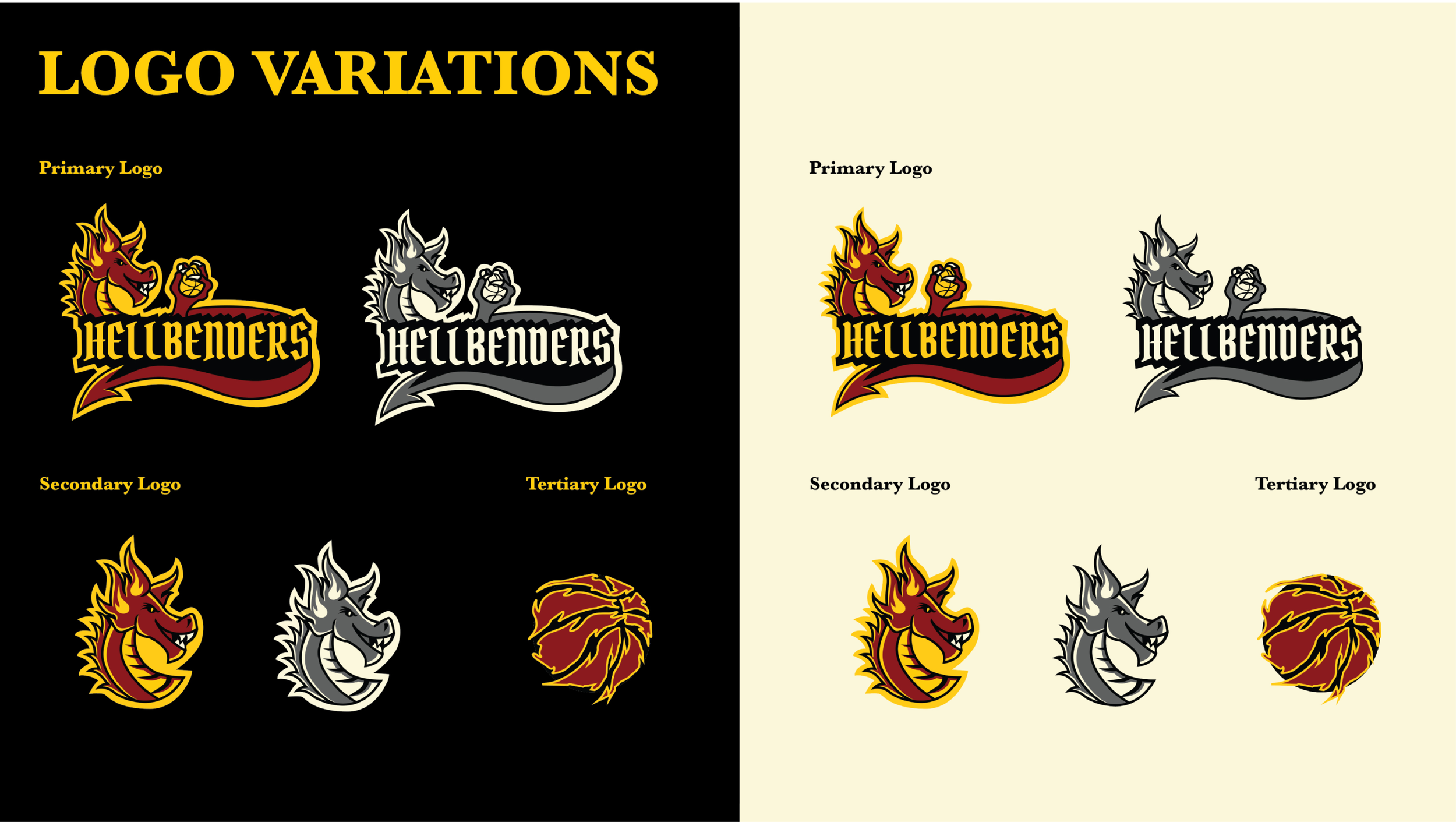 The visual system combines sharp, dynamic forms with a commanding color palette to reflect both movement and dominance on the court. Every element—from typography to iconography—was designed to feel fearless and forward-driven, positioning the Hellbenders as a team that challenges expectations and commands attention.